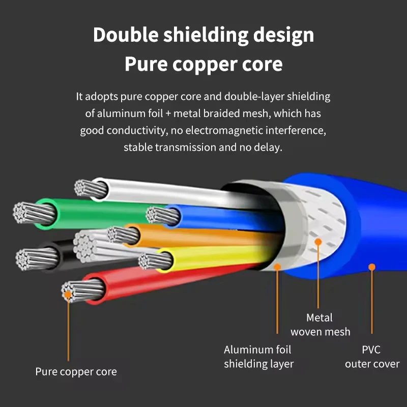 Supporting data transfer speeds of up to **5Gbps**, this cable is ideal for transferring large files, backups, and media content efficiently. The tinned copper conductor and double shielding reduce signal interference, providing smooth and consistent performance.