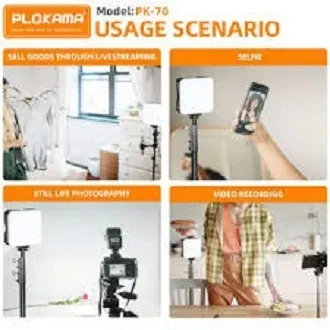 The **PLOKAMA LED VIDEO LIGHT PK70** is a mini and lightweight LED video light designed for photographers and content creators who need portable, high-quality illumination. Its compact size makes it easy to carry while delivering bright and consistent lighting.