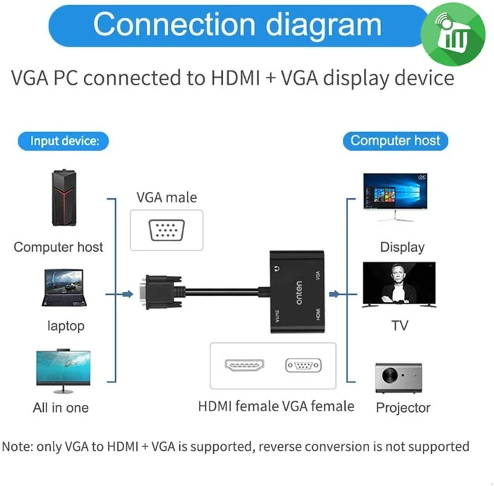 Shop ONTEN 5138HV VGA to HDMI VGA Adapter, VGA to HDMI VGA Adapter for Computer, Desktop, Laptop, PC, Monitor, Projector to experience unparalleled convenience and top-notch performance. Elevate your everyday life with cutting-edge technology and stylish design!